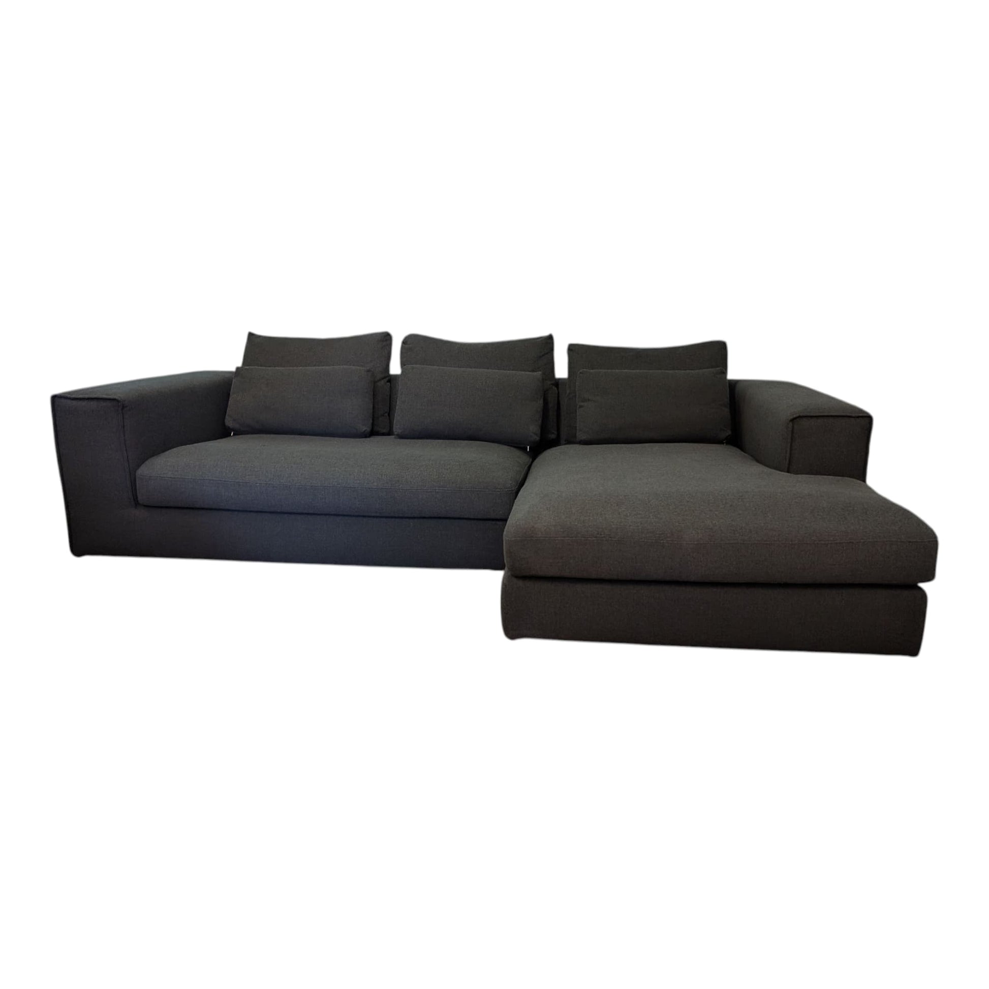Dieses stilvolle, dunkelgraue Ecksofa vom Modell Brindisi (Pfister) befindet sich in einem guten und sauberen Zustand. Es stammt aus einem tier- und rauchfreien Haushalt und wurde professionell tiefengereinigt.